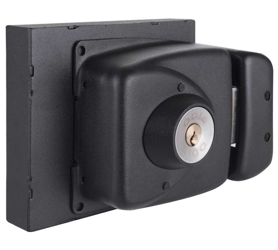 Cerradura de sobreponer Premium con caja reforzada en acero para puertas de corredera exterior. Cilindro interior y picaporte.