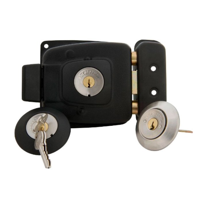 Cerradura de sobreponer para acceso principal, reja o bodega, cilindro exterior incorporado para puertas de hasta 50 mm de espesor