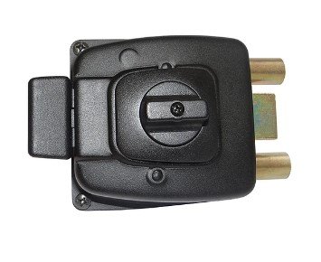 Cerradura de sobreponer para acceso principal y reja, Cilindro exterior incorporado para puertas de hasta 50 mm de espesor.
