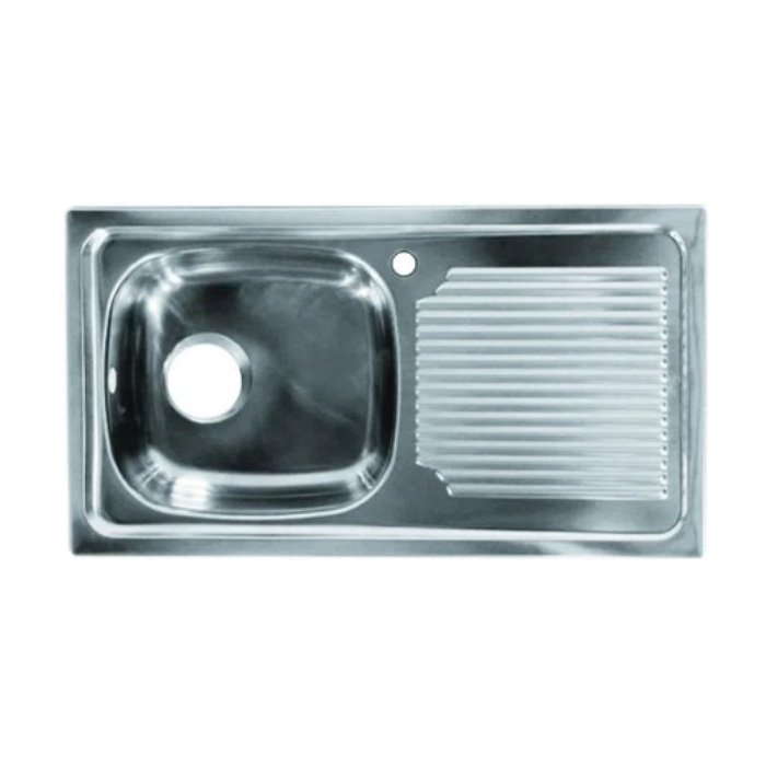 Fabricado en acero inoxidable, lo que asegura una máxima calidad y durabilidad, ya que es altamente resistente a la corrosión por agua y sales minerales, sus vértices soldados y doble pliegue en los contornos evita cortes en la instalación y lo hace un producto seguro en su cocina.