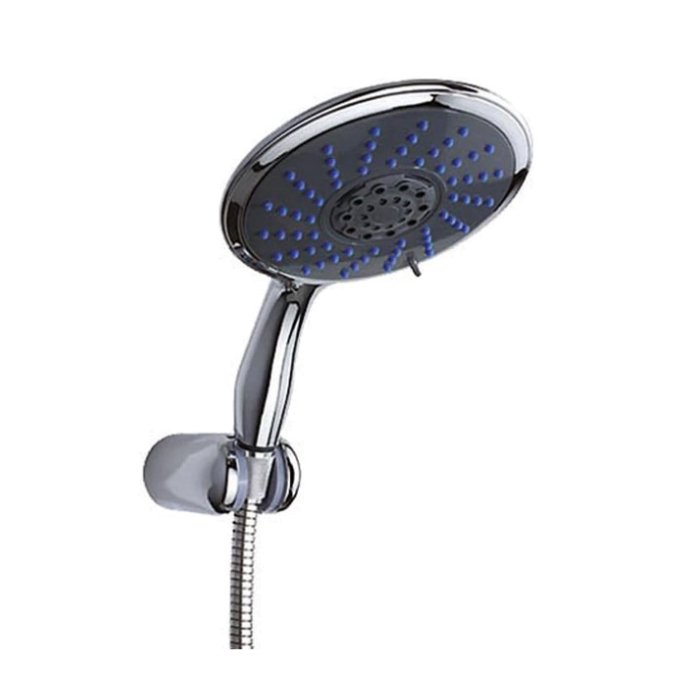 Juego de ducha de 5 funciones, Difusor (15 cm), Ahorro de agua 30% (Uso opcional), con soporte fijo movible y flexible de 1.5 a 2.0 mts.